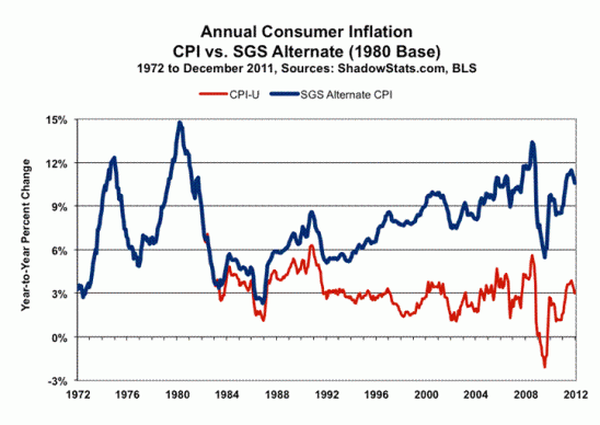 The charts below come from John Williams Hyperinflation Report, January 25, 2012. The commentary is supplied by me.